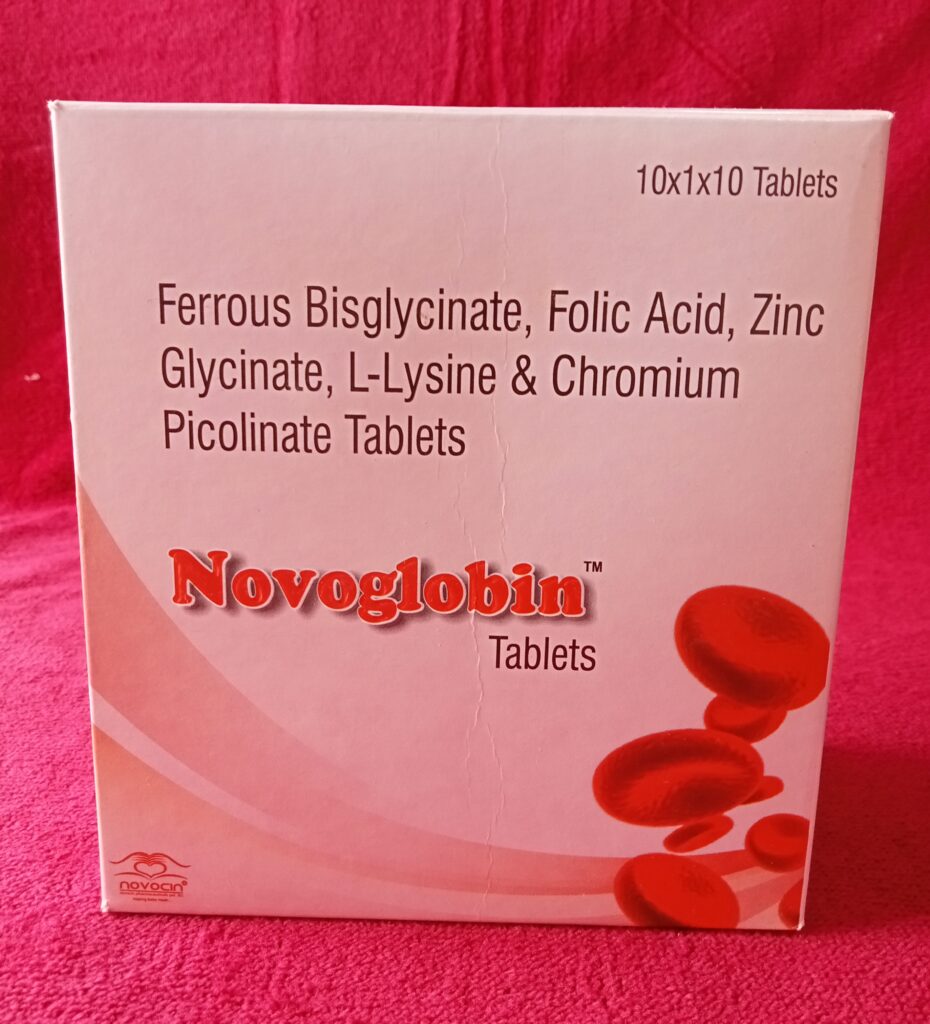 Ferrous Bisglycinate 100mg, Folic Acid 1.5mg, Zinc Glycinate 22.5mg, L-Lysine 60mg, Chromium Picolinate 70mcg Tablets.